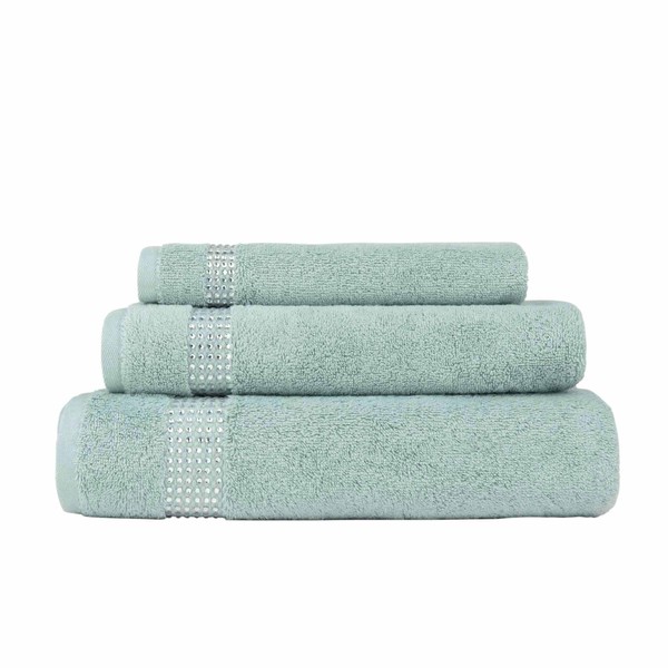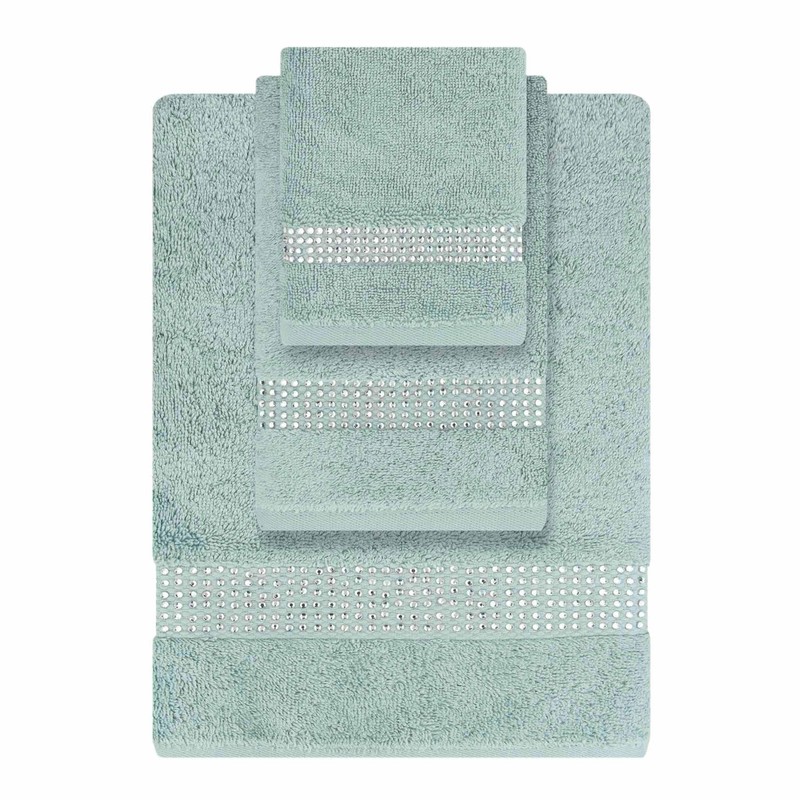 Sparkles Home Stripe 3 Piece Towel Set, 100% Turkish Cotton, Glass Rhinestones, Machine Washable, Aqua