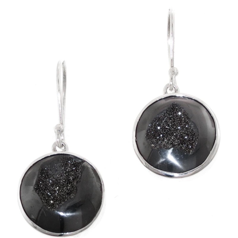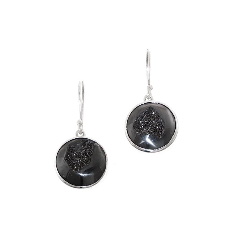 Sparkling Black Titanium Druzy 925 Sterling Silver Earrings, 5/8"