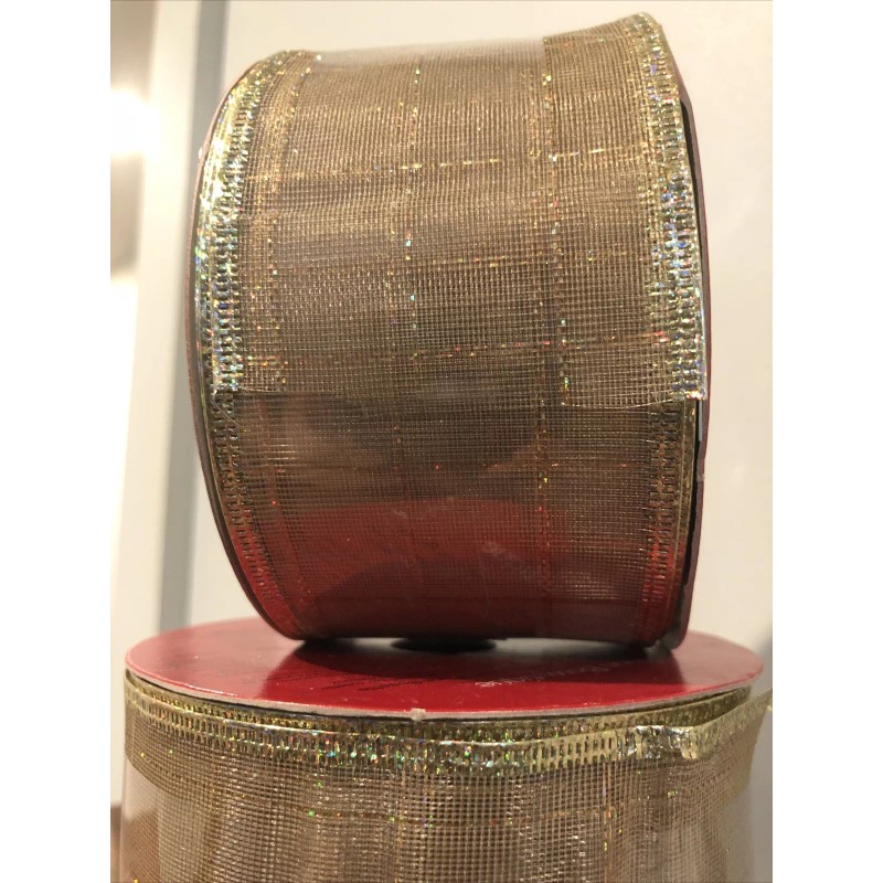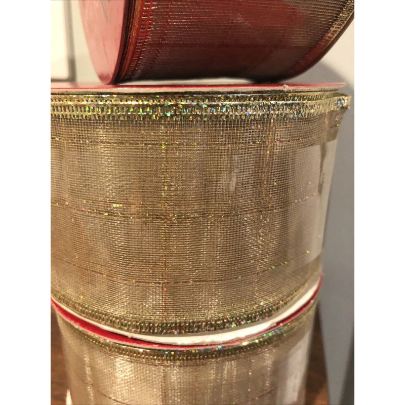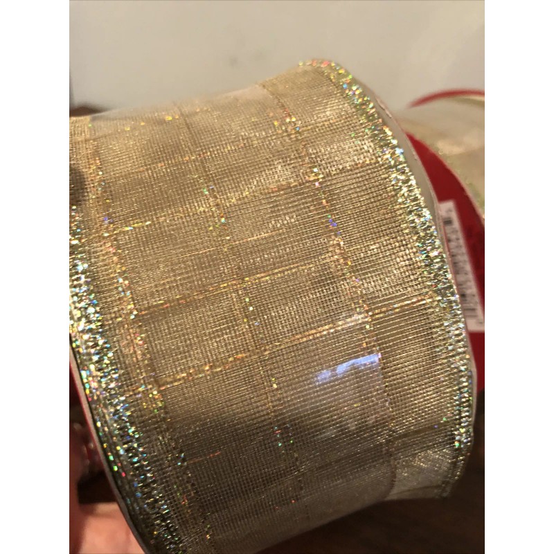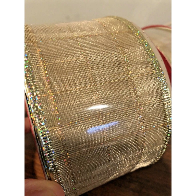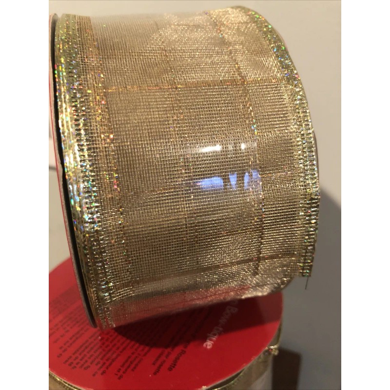 SPARKLING GOLD METALLIC AND NYLON 2.5” WIRED EDGE RIBBON 30 FEET (10 YARDS)