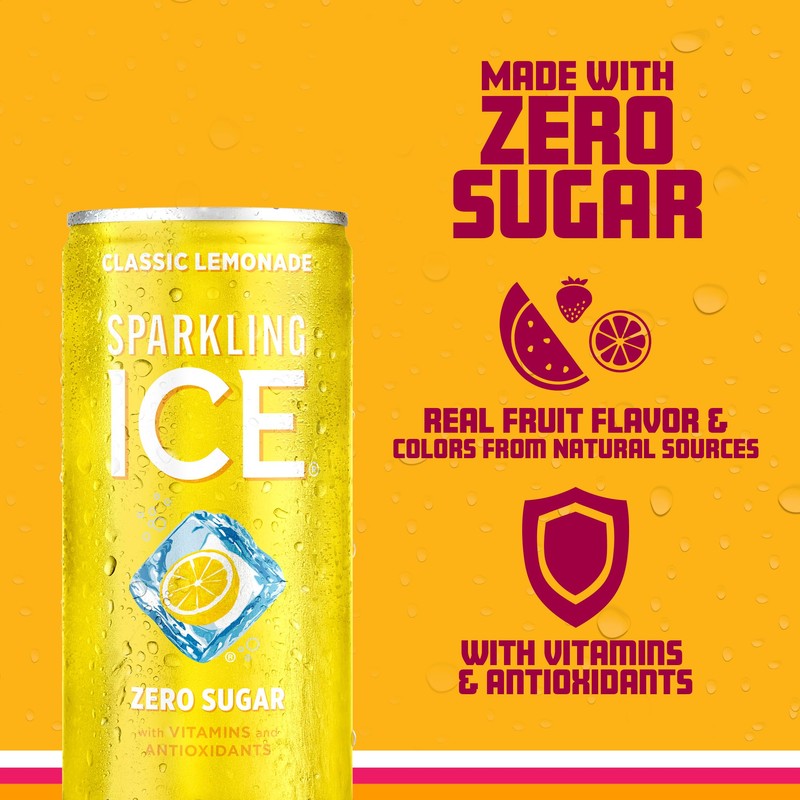 Sparkling Ice Classic Lemonade Sparkling Water, with Antioxidants and Vitamins, Zero Sugar, 7.5 fl oz Cans (Pack Of 10)