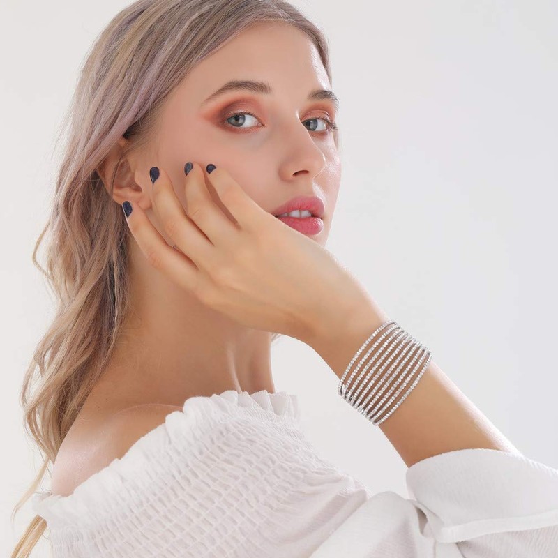 - Its sparkly enough to be worn with bridal, wedding, prom, party, social, pagent, competition wear, evening gown, party dress,This flexible memory wire bracelet is super comfortable and will adjust to the size of almost any wrist