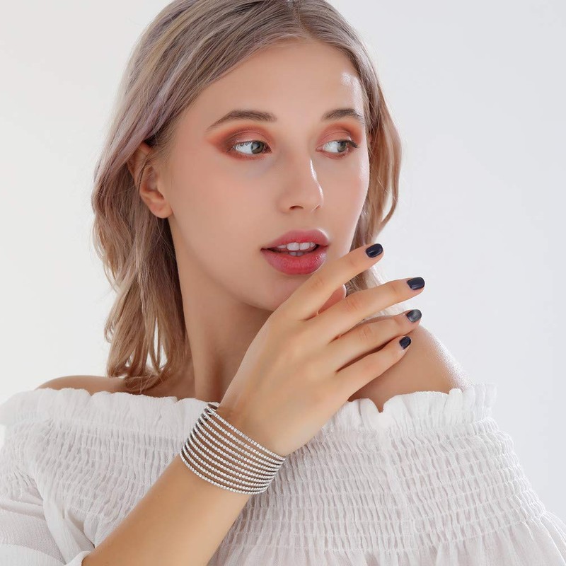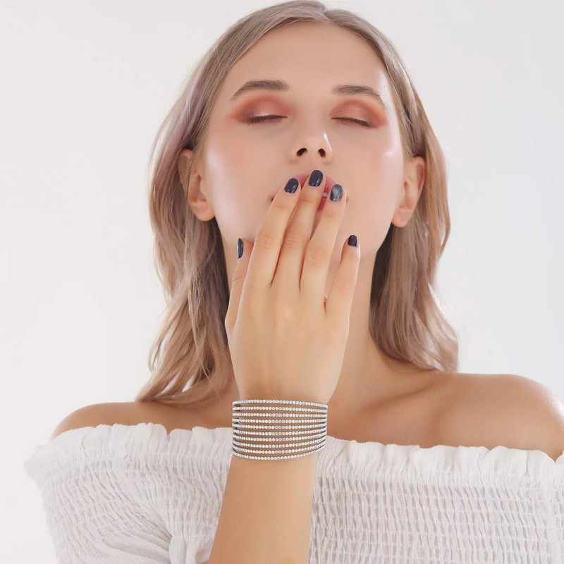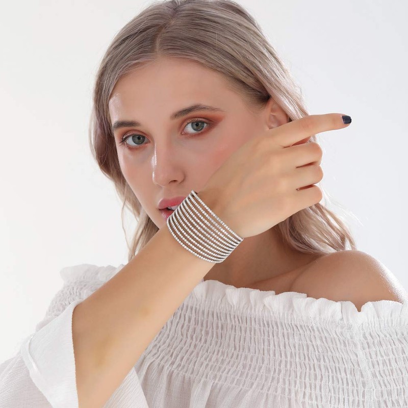 Sparkling Womens Crystal 10 Strand Rhinestone Bracelet