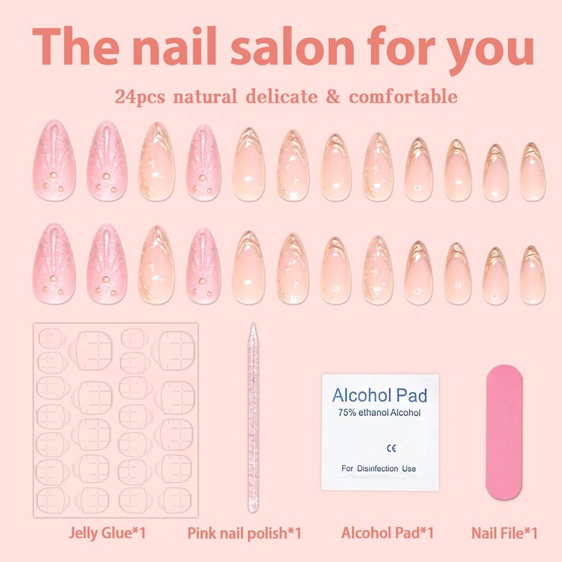 - High Material: Our pink shell nails press ons are made of high quality ABS environmental friendly acrylic material, natural-looking, not easy to break, persistent, non-toxic and odorless, will not harm to your nails and body