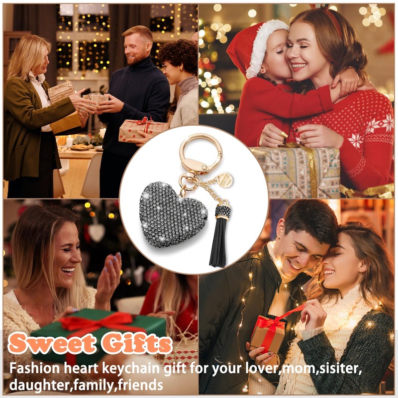 - [Sweet Gifts] Fashion heart crystal keychain accessory is a great gift for women, wife, daughter, mother, sister, girlfriend, classmate, or even yourself on birthdays, Christmas, Valentine's Day, Easter, Thanksgiving, anniversaries, graduation season, Mother's Day, and Teacher's Day, can also be used to reward yourself, excellent decoration to your bags and clothes in daily life.