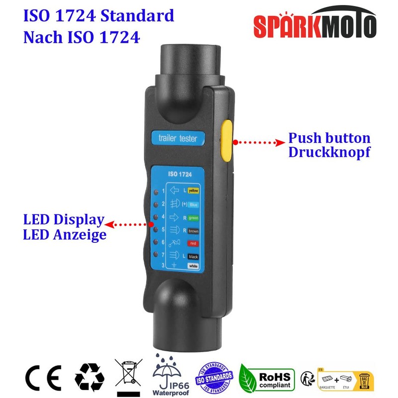 SPARKMOTO Brand 12V 7Pin Trailer Light Tester Conforms to ISO 1724 Standard.