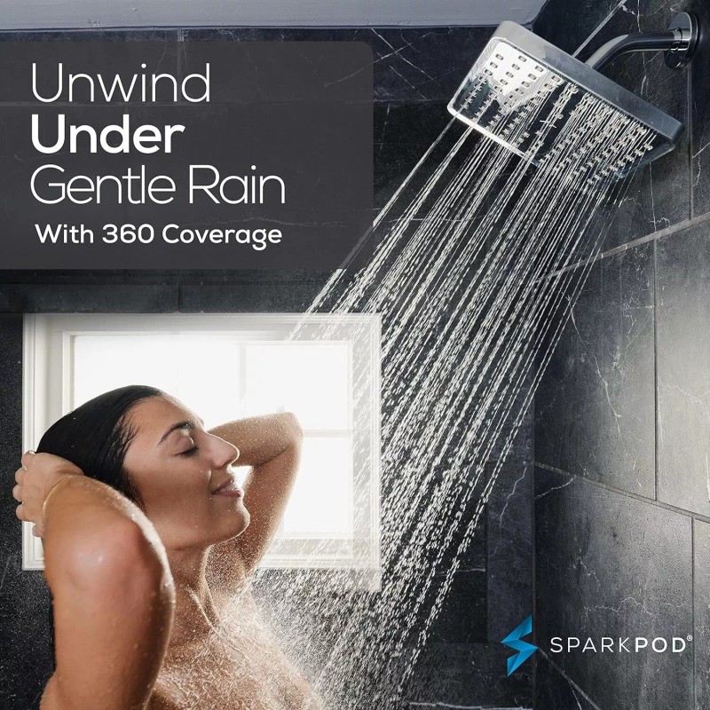 SparkPod High Pressure Rain Shower Head Premium Quality Luxury Design 8in SparkPod