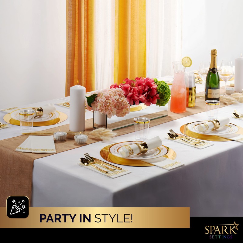 - ✓DESIGN – Our black plates are beveled-edge designs and these party plates with gold rims have an elegant and stylish feeling adding a luxurious look to your table. These plastic wedding plates are thick waterproof and oil proof.
