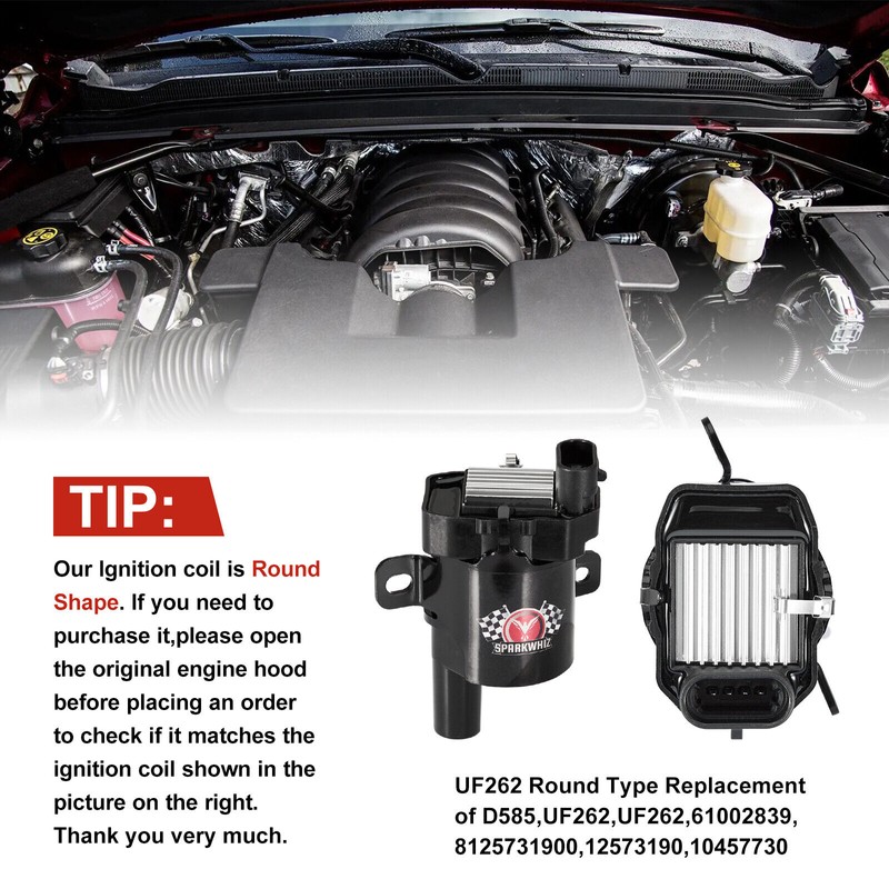 SPARKWHIZ 8PCS Round Ignition Coil Pack UF262 with Spark Plug and Wire For Chevy GMC A++