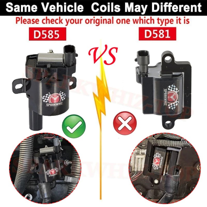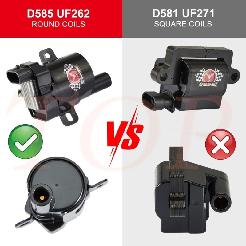 NOTE: There are 2 Different type of coils the the DELPHI style coils with the Round body(UF262/D585) and the MELCO style coils with the Square body(UF271/D581) , which may cause misunderstandings on your part, causing you to make the wrong choice unintentionally.Please use the year/make/model drop down bar and interchangeable part numbers to confirm compatibility. Or just check your original coils to make sure whether you need the round or square style coil. Have any questions, please contact us by email. We will reply within 12 hours.