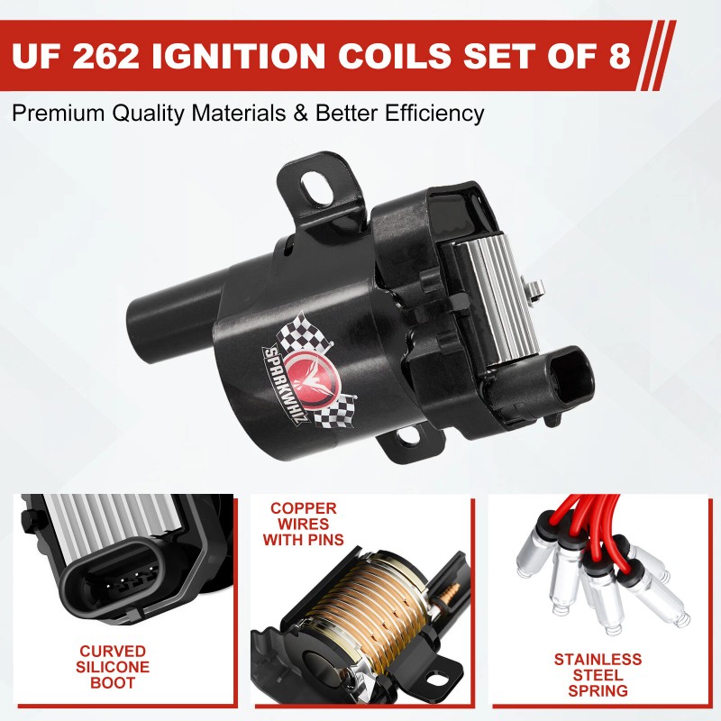 SPARKWHIZ High Performance Ignition Coil & Spark Plug & Wire UF262 For Chevy GMC 5.3L 6.0L