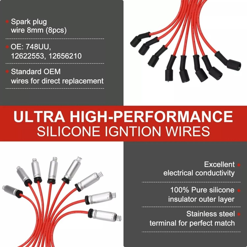 8pcs Round Ignition Coils+8pcs Spark Plug Wires+8pcs Iridium Spark Plugs+6pcs Spark Plug Wire Divider