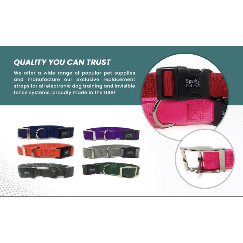 - ECOLLAR REPLACEMENT STRAP: Spring into the season by updating your dog's e-collar receiver strap! This 3/4" x 24" nylon buckle collar with D ring by Sparky Pet Co is the perfect replacement for tattered, faded, and stained e-collar straps—designed for improved comfort, rigorous use, and superior receiver compatibility.