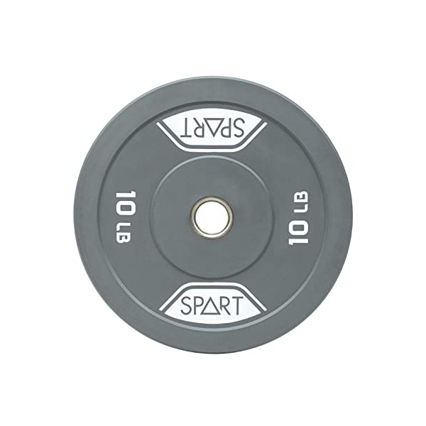 - 💪MATERIAL:Made of 100% high density natural rubber with solid stainless steel inserts, tough and long-lasting.All sizes of SPART bumper plates can withstand more than 80000 repeated drops and with minimal bounce.We guarantee that every size (including 10lb and 15lb) will not bend when used.