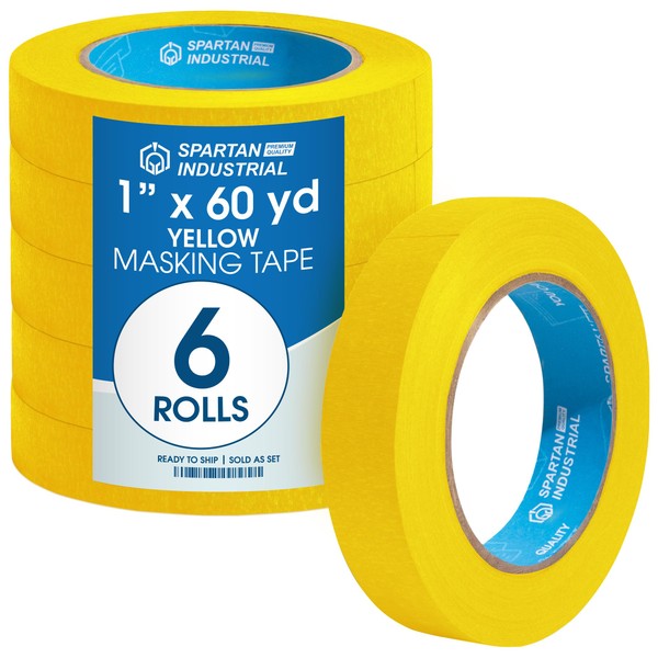 SPARTAN INDUSTRIAL - 1" X 60 yd Yellow Tape - 6 Colored Masking Tape Rolls for Home, Office, School Use - No Residue, 5.5 Mil