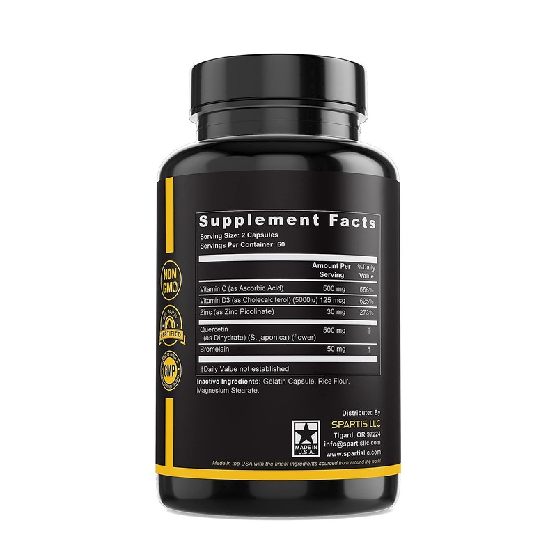 Packed with zinc picolinate 30mg, quercetin 500mg, vitamin C 500mg, vitamin D3 5000iu, and bromelain 50mg. This complex provides clean essential vitamins, minerals and enzymes to nourish the body. We value transparency, as you will find no proprietary hidden ingredient counts to cut corners and costs. With an effective ingredient combination, make this complex part of your daily routine!