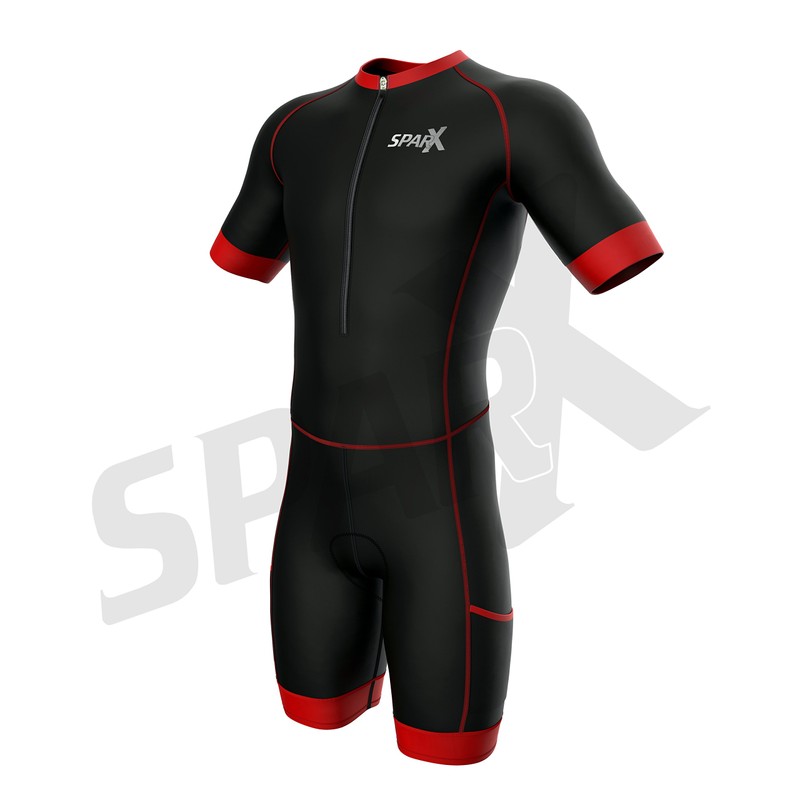 Sparx Men Triathlon Suit Short Sleeve Aero Tri Suit (Black/Red, Small)