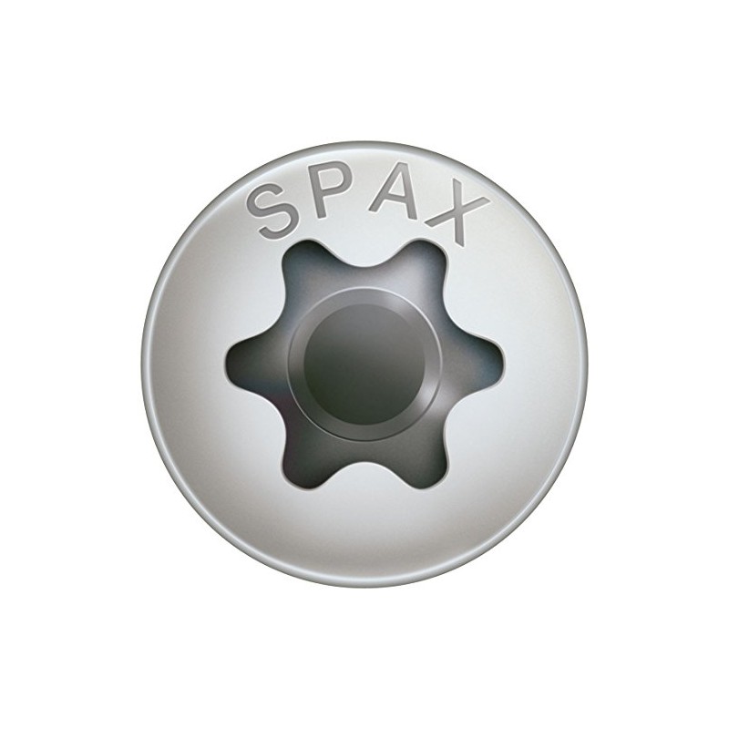 SPAX - Sicherheit, Qualit?t und Zuverl?ssigkeit seit 1967. Das Markenprodukt in der charakteristischen grnen Verpackung C am heimischen Standort in Deutschland produziert und von dort in alle Welt exportiert: Clevere K?pfe in Ennepetal entwickeln st?ndig neue Ideen, erweitern die Produktpalette und etablieren h?chste Qualit?t fr Heimwerker, Profi-Verarbeiter, Planer und Architekten auf der ganzen Welt. - Dieses Produkt eignet sich zum Einsatz: Universell im Au?enbereich. Hohe Korrosionsbest?ndigkeit durch Edelstahl rostfrei A2 - Aufliegender Halbrundkopf mit bndiger Anzugsfl?che. Geeignet fr dnne Beschl?ge mit Durchgangsloch. Optimale Kraftbertragung und sauberer Passsitz auch beim Verarbeiten ber Kopf mit SPAX Bit T-STAR plus T20 mit Fhrungszapfen - Ermdungsfreies Arbeiten und l?ngere Akku-Lebensdauer: Kein Vorbohren (holzabh?ngig). Leichteres Eindringen, Verringerung der Spaltwirkung durch 4CUT: Vier Kanten in der Schraubenspitze. Einfacheres Durchtrennen der Holzfaser durch SPAX-Wellenprofil - Made in Germany. Bauaufsichtlich zugelassen: Europ?isch Technische Zulassung fr Schrauben als Holzverbindungsmittel in tragenden Holzkonstruktionen (ETA-12/0114) - Lieferumfang: 1 SPAX Box, 100 Stck Universalschraube, T-STAR plus, Halbrundkopf, Vollgewinde, 4CUT, Edelstahl rostfrei A2, Material-Gte: 1.4567, Gewindedurchmesser (?d1)= 5mm x Gesamtl?nge (Ls) = 50mm, Vollgewindel?nge (LgV) = 46mm, Kopfdurchmesser (?dk): 9,9mm, Bit nicht enthalten