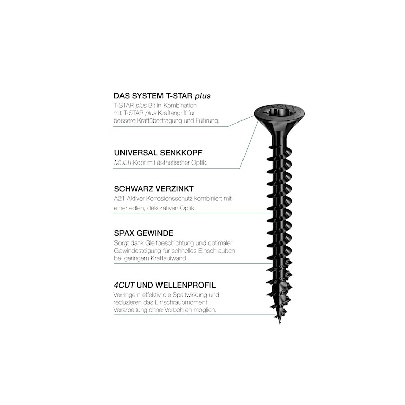SPAX SPAX Universalschraube, Senkkopf, schwarz, T-STAR plus, Vollgewinde (3,5x30 mm 200 Stck)