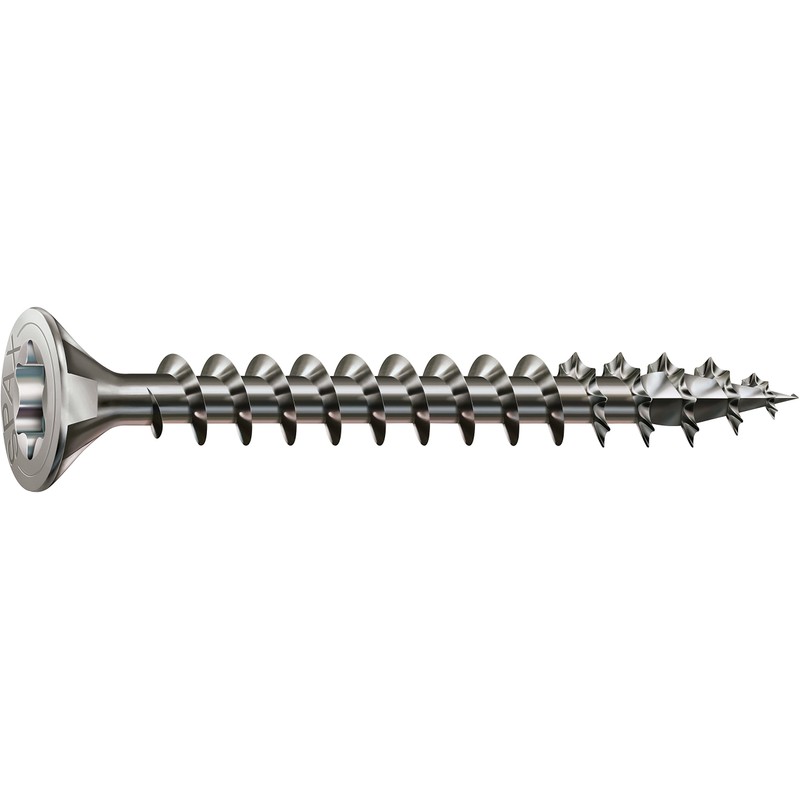 - Effortless work and longer battery life: no pre-drilling (depending on the wood). Easy penetration, reduction of the splitting effect thanks to 4CUT: Four edges in the screw tip. Easier cutting of the wood fibre thanks to Spax wave profile