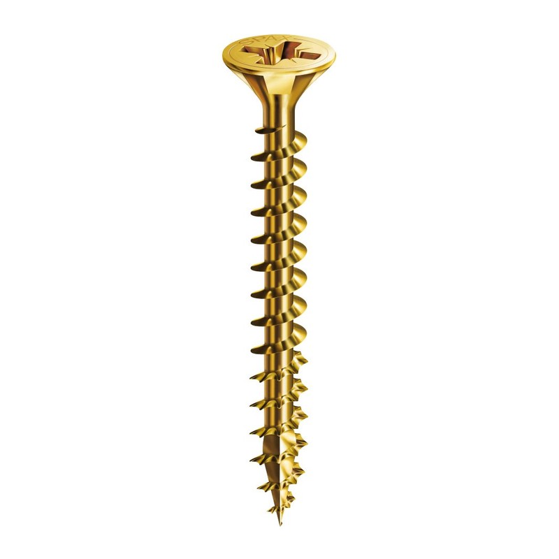 - Effortless work and longer battery life: no pre-drilling (depending on the wood). Easy penetration, reduction of the splitting effect thanks to 4CUT: Four edges in the screw tip. Easier cutting of the wood fibre thanks to Spax wave profile