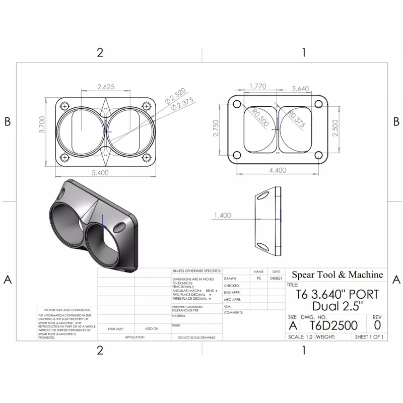 Spear Tool & Machine T6 Turbo Transition Flange Dual 2.5" 3.64" x 2.5" Port MADE IN USA