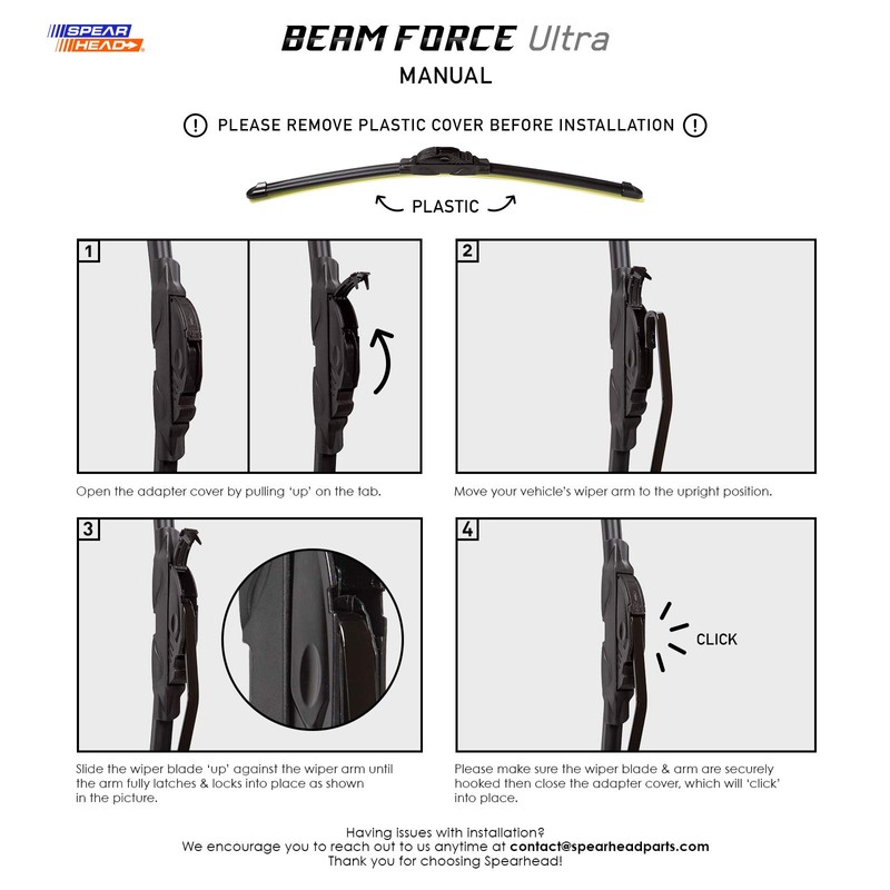 Spearhead Beam Force ULTRA 24"+18" Wiper Blades w/Teflon Rubber for Max Durability (Pair)