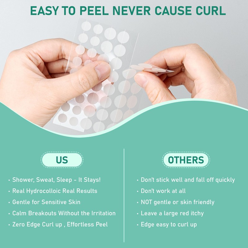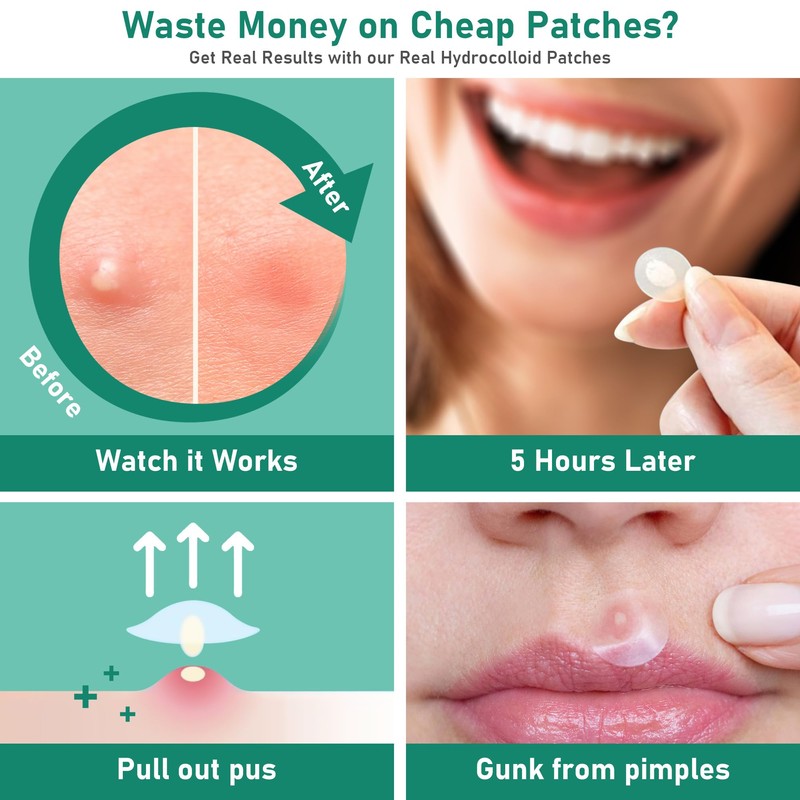 • Blemish Free, Healthier Skin: These translucent, and fast-acting acne patches actively absorb a developing blemish or an already-present pimple. The sticker-like hydrocolloid acts as a protective cover over the treated area to keep you from picking and quickly and effectively
