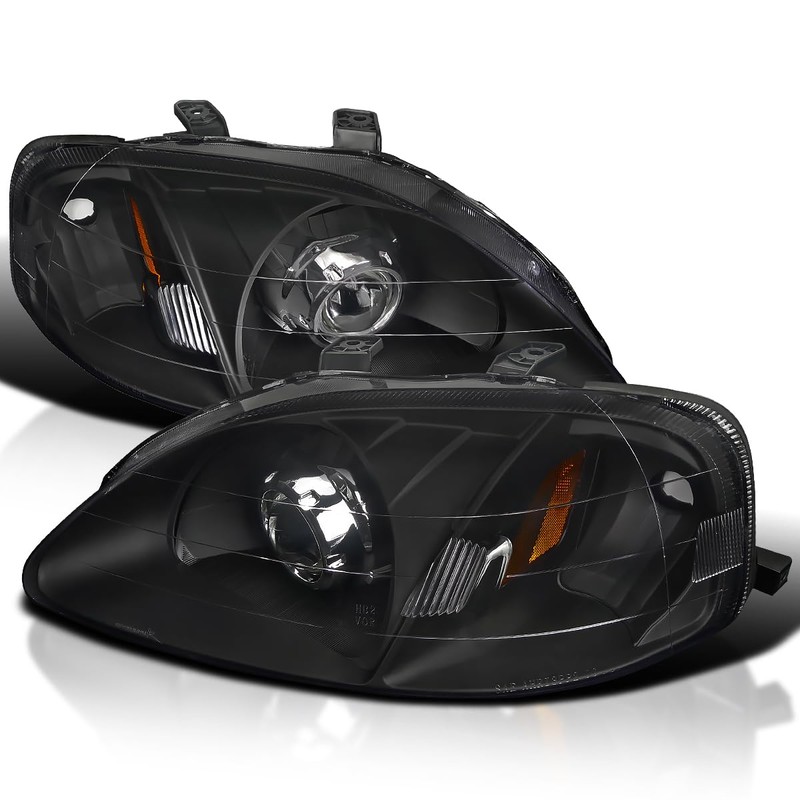 Spec-D Tuning Retrofit Style Projector Headlights Black Compatible with 1999-2000 Honda Civic 2/3/4Dr Left + Right Pair Headlamps Assembly