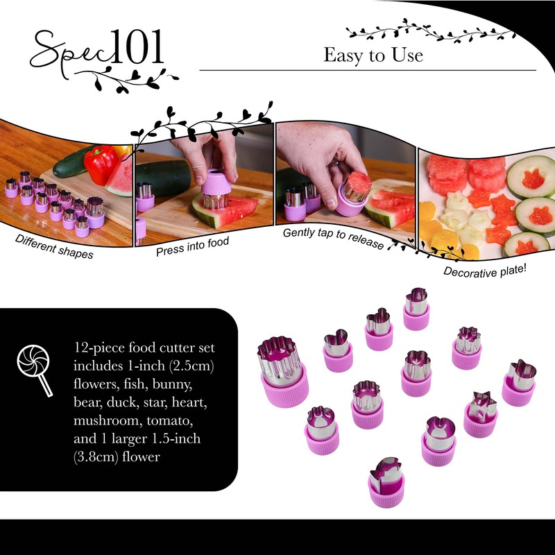 - [For Any Occasions]: Impress guests at your next holiday party with Spec101 Vegetable Cutter Shapes Set; Decorate beautiful cakes, pastries, and cookies for weddings or tea parties