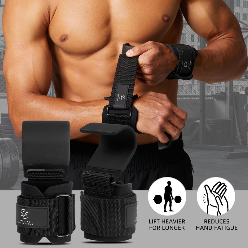 Special Essentials Weight Lifting Hooks - 1 Pair of Premium Steel Hooks with Padded Wrist Straps for Enhanced Grip & Support During Heavyweight Lifting, Pull-Ups, Powerlifting, Deadlifts, and Rows