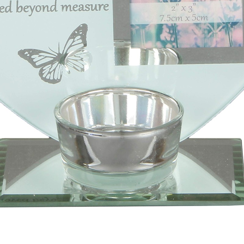 - The heart shape frame is made of glass With a polished silver glass tea light holder