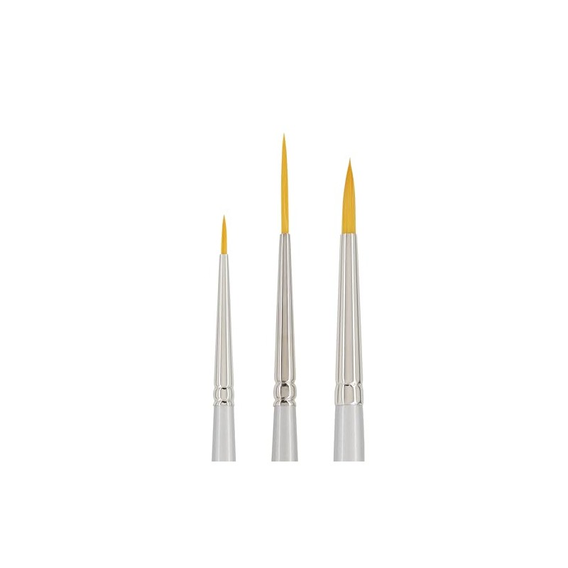 - 1 brush each made of Toray hair, size 0/1.9 mm and size 4/3.4mm- 1 brush red sable hair size 0/1.9 mm.