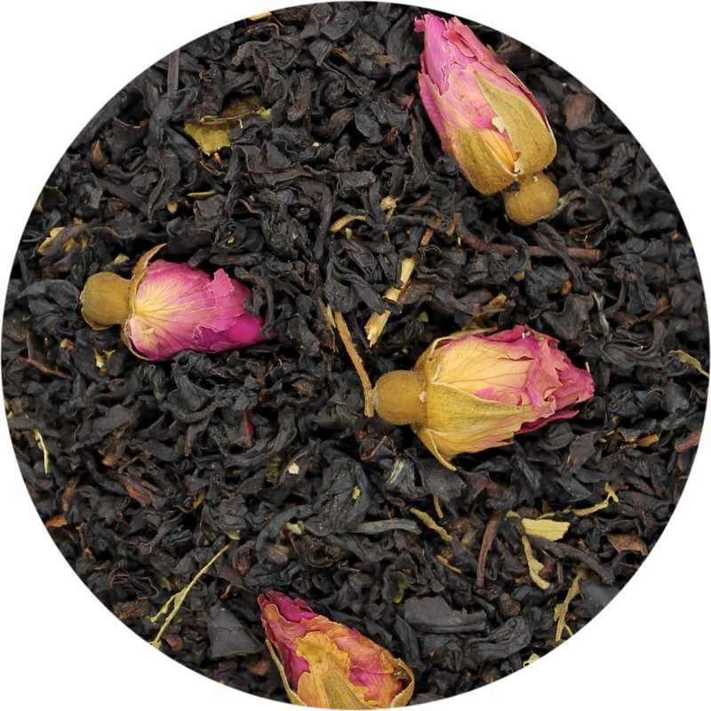 Ingredients: Black Tea, Rose Buds, Natural and Artificial Rose Flavor, Natural and Artificial Vanilla Flavor, Blackberry Leaves, Stevia Leaves.