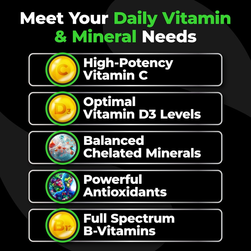 - CONTAINS CHELATED MINERALS - Our daily multi-vitamin/mineral supplement also contains a full spectrum of chelated minerals -- minerals that are bound to amino acids and absorbed directly through the stomach lining; making them the most efficiently absorbed form of minerals.