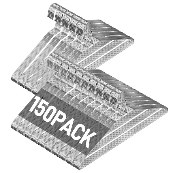 SPECILITE Wire Metal Clothes Hangers Bulk 150 Pack for Standard Size Suits, Coats, Shirts, Pants, Skirts, Space Saving, Non Slip,16 Inch 12 Gauge Ultra Thin, Silver