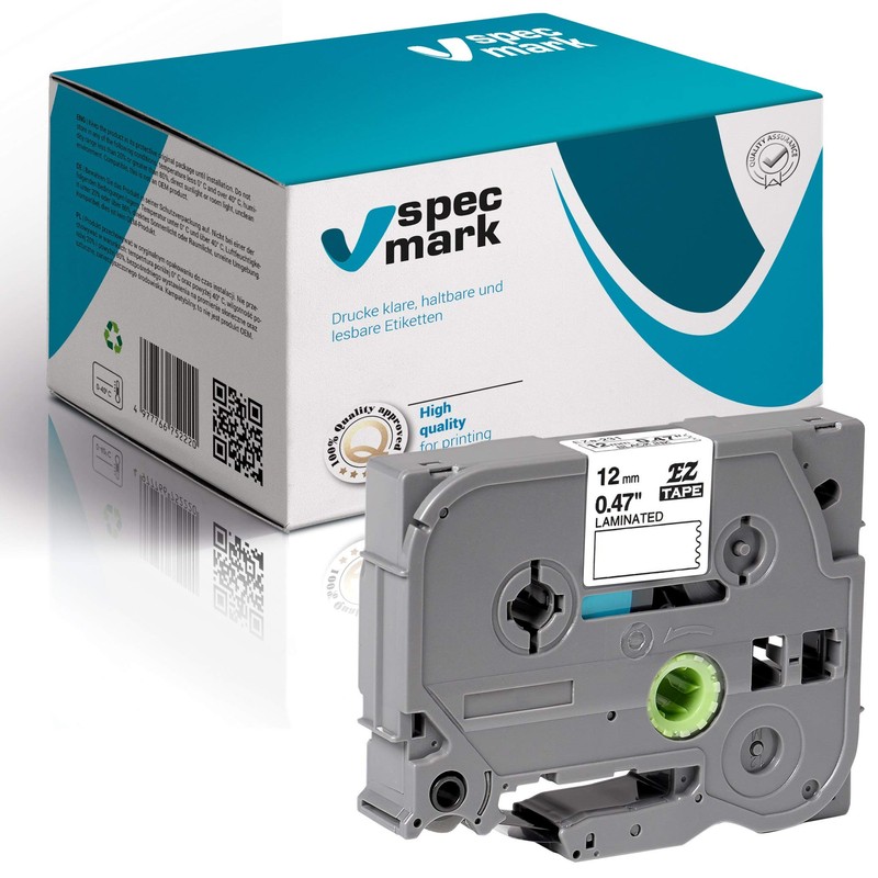 • Size: 12 mm x 8 m. White Ribbon, Black Lettering Laminated self-adhesive label tape TZe-231 (AZe-231, EZe-231, TZ-231, TZ2-231) compatible with all Brother P-touch devices. Specmark: High quality replacement for Brother TZe label tape. Print clear, durable and legible labels. Compatible with Brother P-touch printers. Warranty 24 months. Certified manufacturer - ISO 14001, ISO 9001. SGS and RoHS compliant product