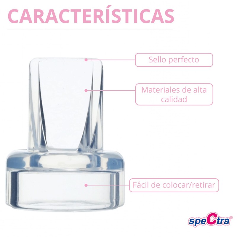 - VÁLVULAS DE SILICÓN PARA COPAS HANDSFREE SPECTRA (2 PACK). Las válvulas de silicón transparente flexibles, también conocidas como Duckbill valves, originales marca SpeCtra, son exclusivas para uso en el Kit de Copas Manos Libres Spectra. (NO son adecuadas para el kit de extracción de extractor de leche eléctrico)