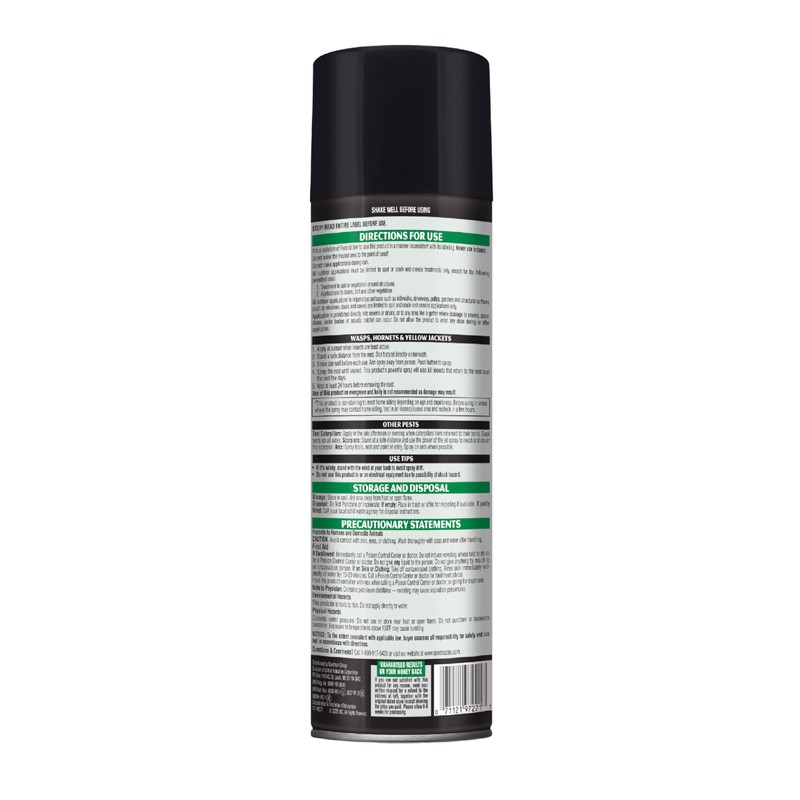 The power is in your hands to keep your landscape in line – unleash it with Spectracide lawn and garden products. Our easy-to-use insect, lawn disease and weed control solutions help you tame lawn and landscape invaders with incredible pest-punishing power. Take command with Spectracide brand. You hold the power.Spectracide Wasp and Hornet Killer3 (aerosol) eliminates wasp and hornet nests by killing insects on contact. Use this product to spray nests with up to a 27 foot jet spray. Use this product outdoors where insects live and breed — never use indoors. This product is non-staining to most home siding depending on age and cleanliness. Before using in areas where the spray may contact home siding, test in an inconspicuous area and recheck in a few hours. Use of this product on evergreen and holly is not recommended as damage may result. Take charge of your backyard with Spectracide weed and bug control products.