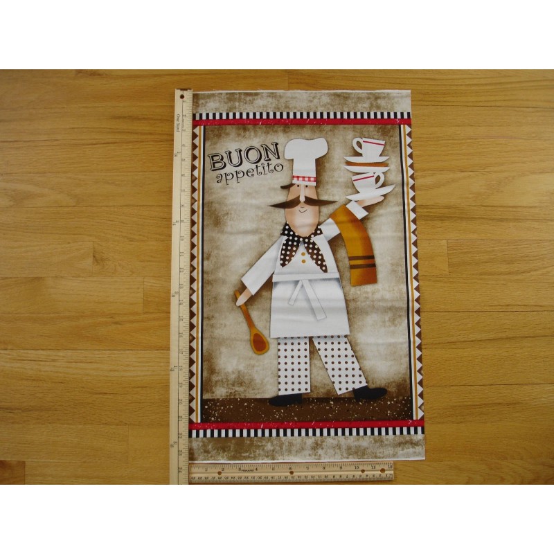 Spectrix Chef Buon Appetito Cups Saucers Spoon Cotton Quilt Fabric Panel Wall Hanging