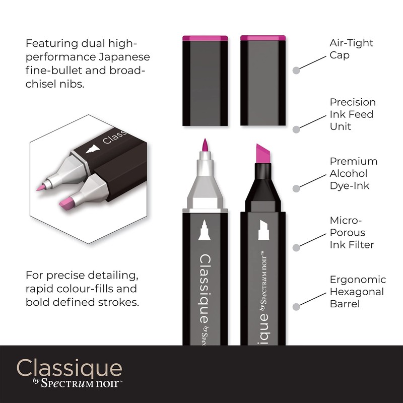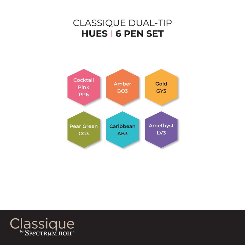Spectrum Noir Classique Design Alcohol Marker Dual Nib Pens Set-Hues-Pack of 6