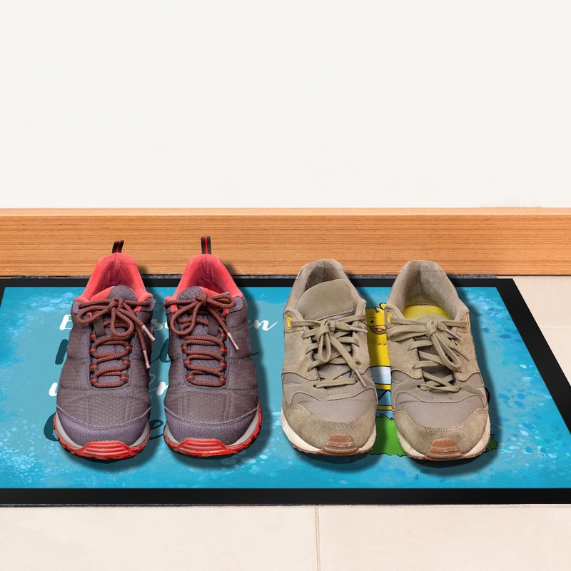 • Material: synthetic fibre, size: approx. 60 x 40 cm. With practical non-slip rubber base and low rubber edge so that the doormat will never be a tripping hazard. High-quality print and rich colours. A real eye-catcher