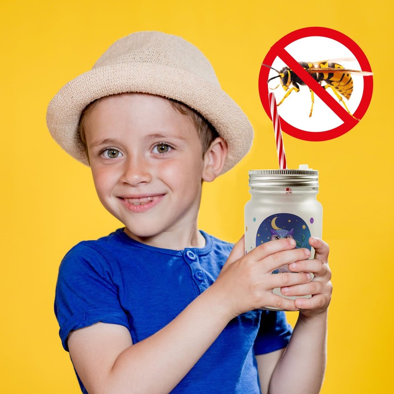 - Material: glass, metal and plastic. Capacity: approx. 400ml Includes screw cap lid, matching plastic tube. The glass without lid is dishwasher safe. Chic mason jar style and great protection against wasps and other insects.