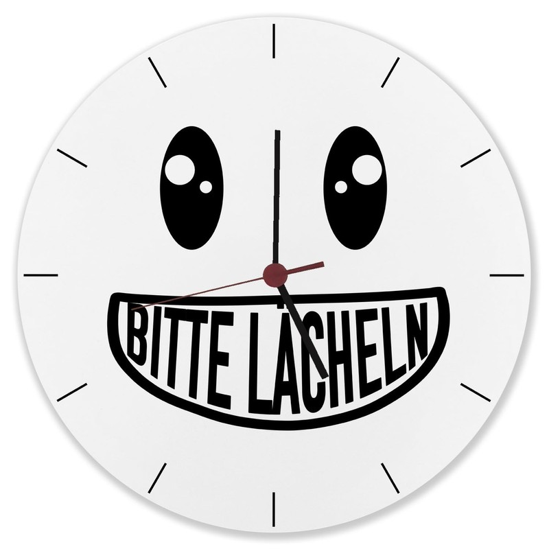 - Box contents: 1 x "Bitte smile" wall clock made of aluminium with grinning face