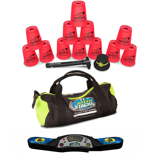 Speed Stacks Custom Combo Set: 12 NEON PINK Cups, Pro Timer 4, Cup Keeper, Quick Release Stem, Gear Bag