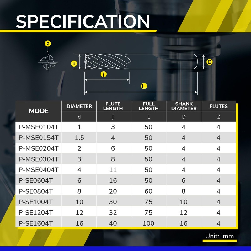 Your search for the perfect end mill is over! Our unique drill bit sets are ideal for various drilling, machining, and manufacturing needs.Tired of mediocre end mills on the market that fail to meet your expectations? Looking to enhance your craftsmanship and take your projects to new heights? Seeking reliable tools to cater to your expertise?Unlike other compromises on quality and performance, our end mills are crafted with the utmost care and precision, ensuring superior results every time.Introducing SpeedTiger's premium end mill collection, designed to empower DIY enthusiasts and experts alike.FEATURES:Carbide Square End Mill (1 piece): P-SE– 4 Flute 16mm 100LBENEFITS:Can be used in various materials from wood to steel, an excellent value for your home and store work needs.Made from micrograin carbide, it has exceptional toughness, durability, and machinability. It performs brilliantly and is an excellent value for its price.Nano precision to manufacture our end mill with the accuracy of ±2μm to enable users to achieve professional cutting quality.Manufactured with robust and tempered steel construction, our drill bits are designed to last, providing superior durability and performance.Featuring an industrial grade, our particular coated drill bit set provides your drill with a longer life, more excellent grip, and precision accuracy, even on the most challenging metals.We provide the absolute best customer service. Should you have any issues with the product, we will refund your full purchase price!Rest assured, our products prioritize your safety and are manufactured with the highest standards in mind. Due to high demand and sustainable production practices, our stock is limited.Elevate your creativity and design skills to the next level with Speed Tiger's end mills today!