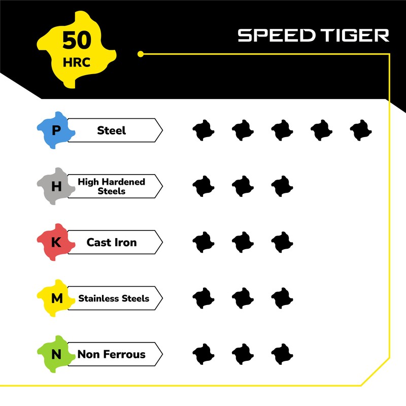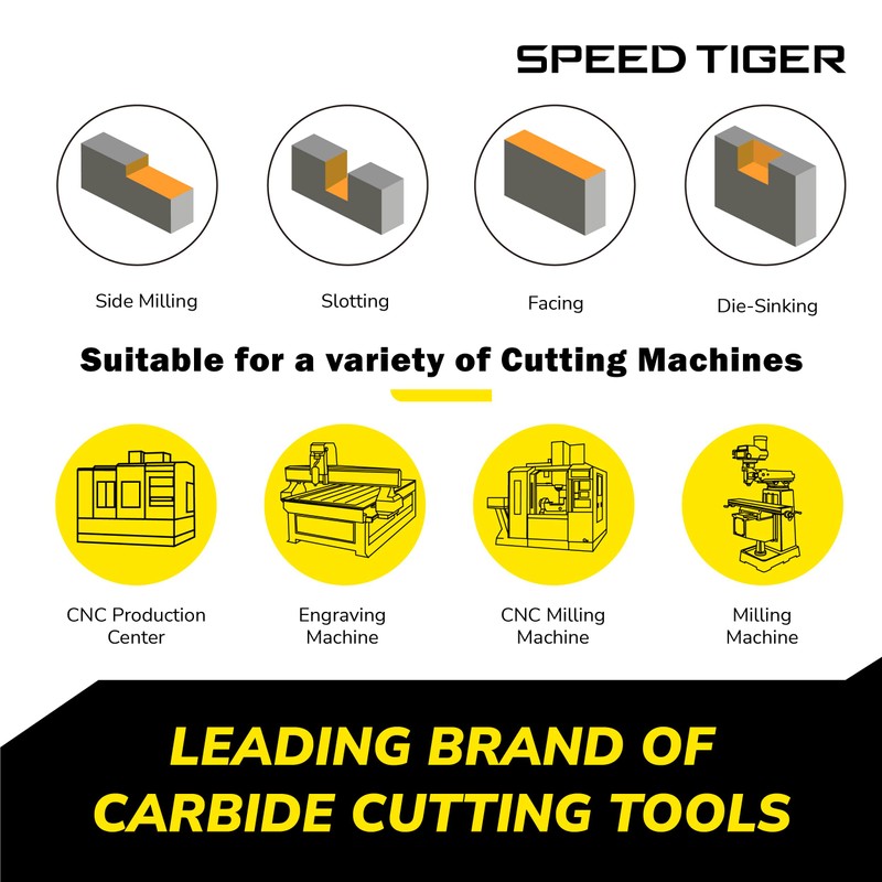 • ✅ APPLICATION - SPEED TIGER Carbide end mills can be Applicable with copper, copper alloys, cast iron, steels, carbon steels, alloy steels, pre-hardened steels, hardened steels, and stainless steel materials. Best use for materials HRC less than 50.
