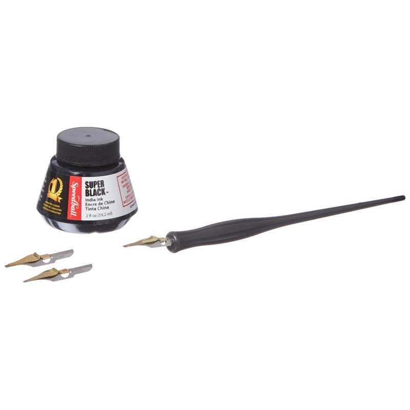 • INCLUDES PEN HOLDER & Ink - Includes (1) Speedball Standard Pen Holder and (1) 2oz (59.1ml) Speedball Super Black India Ink