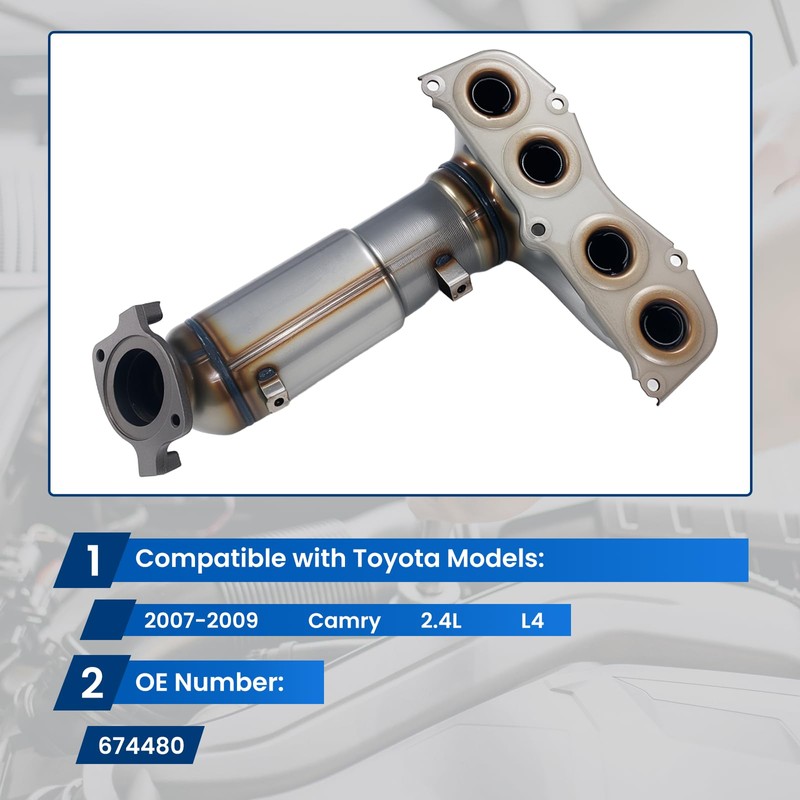 - 【Vehicle Fitment】Catalytic Convertor Compatible with 2007-2009 Toyota Camry 2.4L L4. Make sure to research the part's fit for your vehicle before purchasing. Enter your vehicle's information (year, make, model, engine, and trim) to verify compatibility and review the qualifier notes.