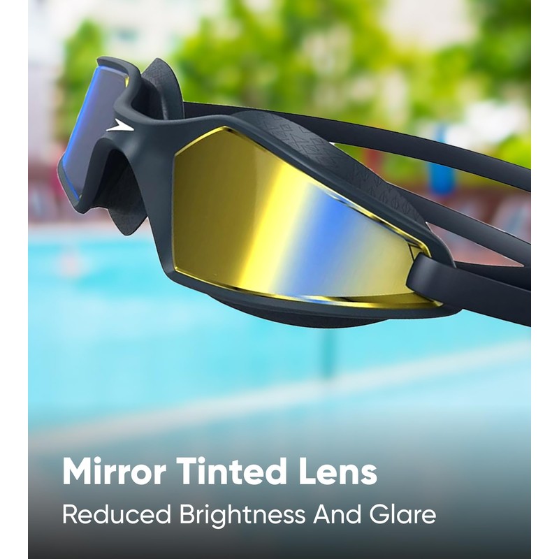 Speedo Unisex Hydropulse Swimming Goggle | Comfortable Fit | Adjustable Design, Navy/Oxid Grey/Phoenix Red/Gold, One Size