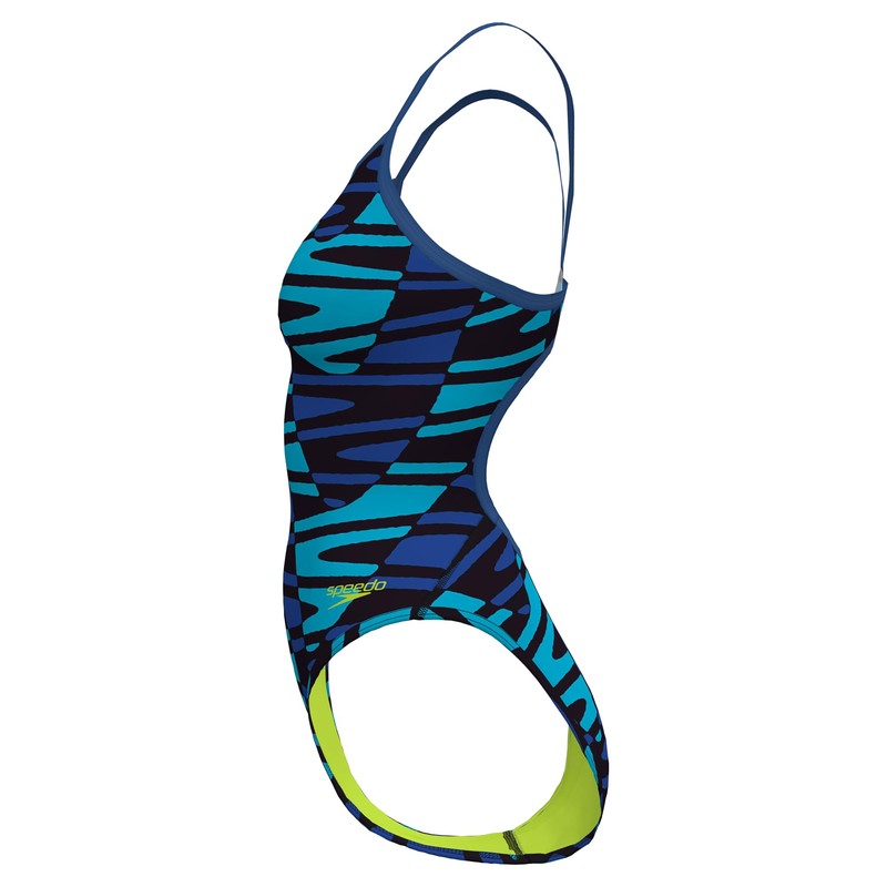 Speedo Women's Disco Boom Flyback Swimsuit (US, Numeric, 30, Regular, Regular, Standard, Blue)